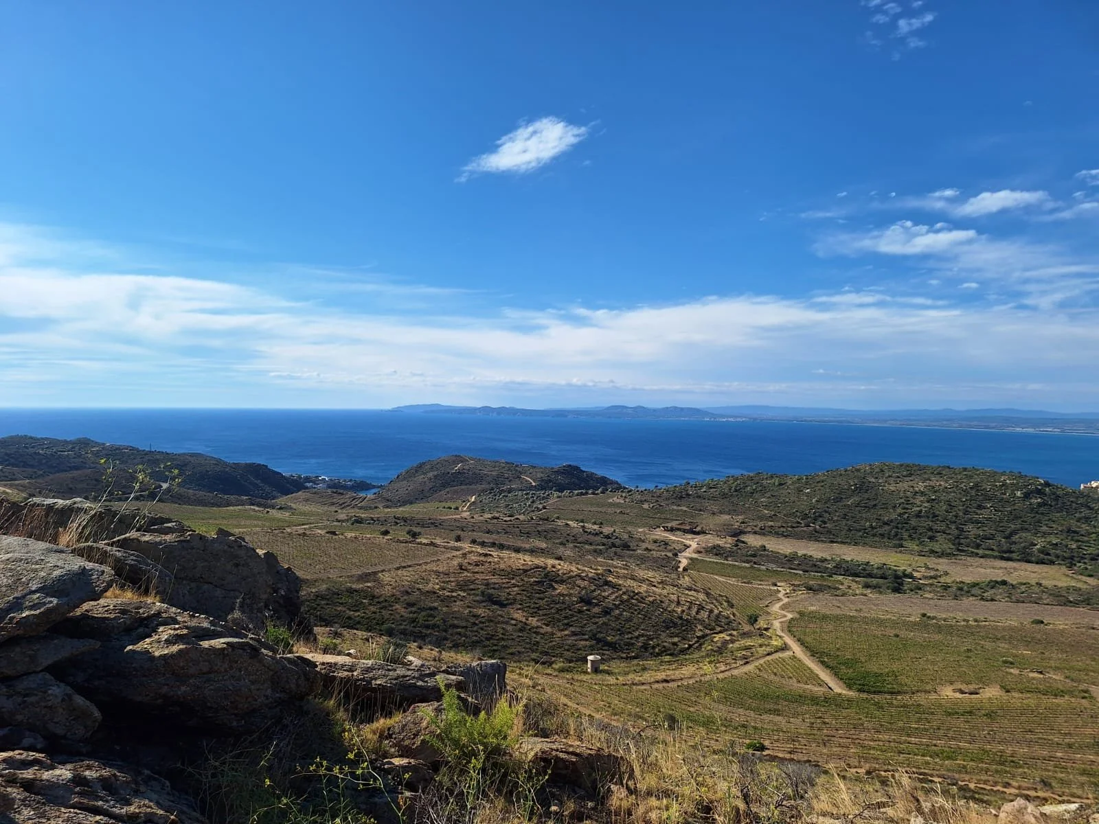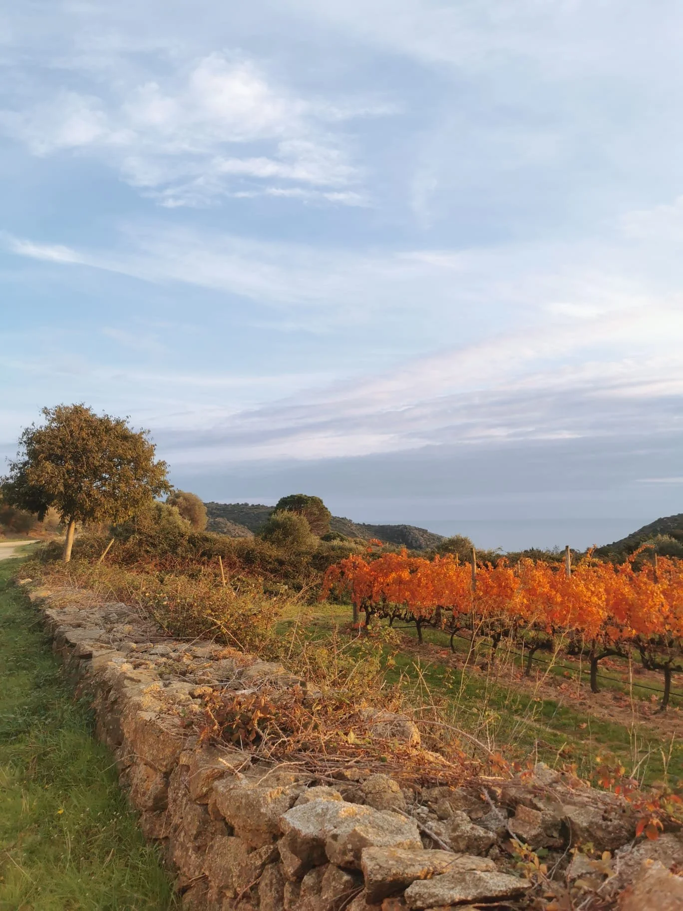 El viñedo observa al mar desde unos suelos de granito y se expresa a través de variedades mediterráneas como la garnacha blanca, gris y tinta, la monastrell o la picapoll. El proyecto trabaja con prácticas de viticultura regenerativa y una mirada que busca comprender el lugar más que transformarlo.